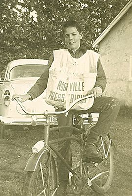 Many kids had paper routes, and there was competition for the larger ones with houses close together, although the routes for the morning paper which required one to get up by 5 AM were less popular. Although many depended on radio for news the newspaper was still the major source of information, and reporters were held in high regard. To take over a paper route provided a kid with a crash course in business. His papers were dumped at a designated street corner where he picked them up, folded them into individual rolls and headed off on his route via a bicycle if he was fortunate enough to own one. The paper boy was in effect a retailor who bought his papers and sold them to his customers. Collecting the