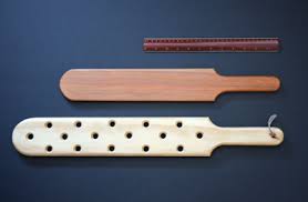 super-ego. The paddle was a prominent fixture in every school principal’s office and parents almost always assumed that it was used judicially. I still recall vividly my only trip to the principal’s office, and the terror and humiliation I felt as he deliberately left me waiting in the outer office. I was in the eighth grade and had avoided trouble until then by being “the teacher’s pet” according to my classmates. I avoided “cracks” as spanking was referred to then, but Mr. Leckrone made it clear that he was not one to be messed with and that a return appearance to his office would result in unspecified but dastardly consequences. I returned to my home room